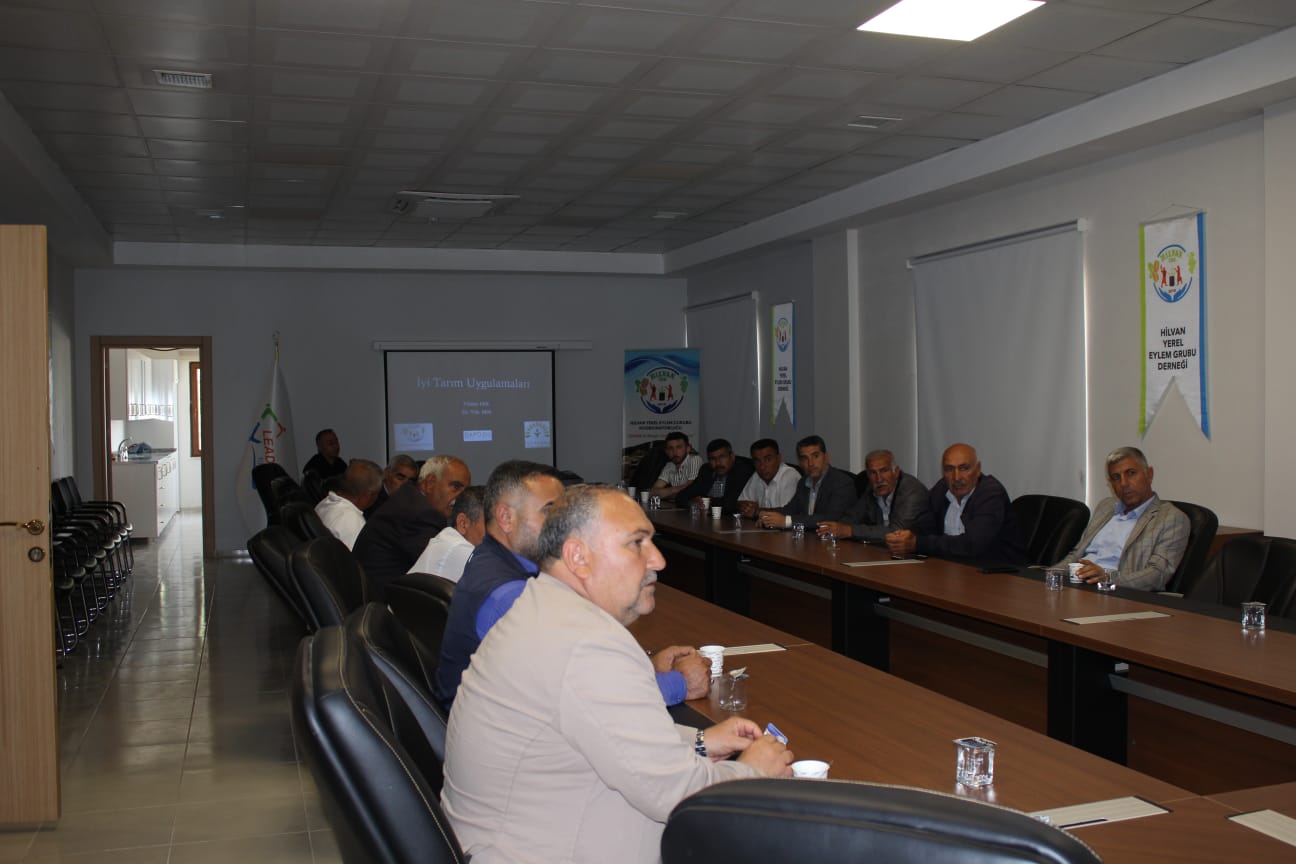 “Avrupa Birliği ülkelerinde 30 yıldır uygulanan LEADER yaklaşımı, kırsal alanlar için sürdürülebilir kalkınma stratejilerinin hazırlanması ve uygulanmasında yerel aktörlerin katılım çok büyük önem arz etmektedir. Kırsal kalkınma toplumun tüm kesimlerinin dengeli ve sürdürülebilir gelişimi için yereldeki paydaşların aktif bir şekilde rol alması gerekmektedir. Yerel Kalkınma Stratejimizin hedeflerine ulaşması için paydaşlarımızla birlikte organize bir şekilde hareket etmekten geçmektedir. Yerel paydaşların becerileri ve bilgilerini geliştirmek için Hilvan Yerel Eylem Grubu olarak sürekli saha çalışmalar yürütüyoruz. Yerel dinamikleri harekete geçirmek için eğitim ve projelere herkesi dâhil etmek istiyoruz. Bu kapsamda çiftçilere ve muhtarlara Tarım Ürünlerinin Çeşitlendirilmesi Amacıyla İyi Tarım Uygulamaları Hakkında Eğitim verdik. İyi Tarım Uygulamalarının amacı insan sağlığına ve çevreye zarar vermeyecek üretimin yapılması anlamına gelir.  İyi Tarım Uygulamaları (İTU) FAO tarafından, “tarımsal üretim sisteminin sosyal açıdan yaşanabilir, ekonomik açıdan karlı ve verimli, insan sağlığını koruyan, hayvan sağlık ve refahı ile çevreye önem veren bir hale getirmek için uygulanması gereken işlemlerle ilgili muhtar ve çiftçilerimizi bilinçlendirmek istiyoruz. Hilvan ilçemiz iklim, toprak ve su koşulları ile tarımsal üretim için son derece avantajlı konuma sahiptir. Buna karşılık, üreticilerimizin babadan kalma üretim teknikleriyle üretimi gerçekleştirmeleri ve buna bağlı olarak da teknik hizmet almak konusundaki isteksizlikleri tarımsal üretimimizde birtakım sorunlar ortaya çıkartmıştır. Özellikle bilinçsiz zirai ilaç uygulamaları, tarımsal ürün ihracatımızda kalıntı sorunu yaşamamıza neden olmuştur. Ülkemizde “İyi Tarım Uygulamaları” şartlarının, başta çiftçiler olmak üzere, tüm sektör çalışanları tarafından benimsenip, doğru şekilde uygulanması gerekmektedir. İyi Tarım Uygulamaları konusundaki verilen eğitim sayesinde Hilvan ilçemizde meyve-sebze üretimimiz başta olmak üzere yenilikçi yaklaşımlarla üretim yapılacaktır. Hilvan ilçemizdeki insanların sağlıklı ve güvenilir ürün tüketmeleri böylece sağlanacaktır.” dedi.